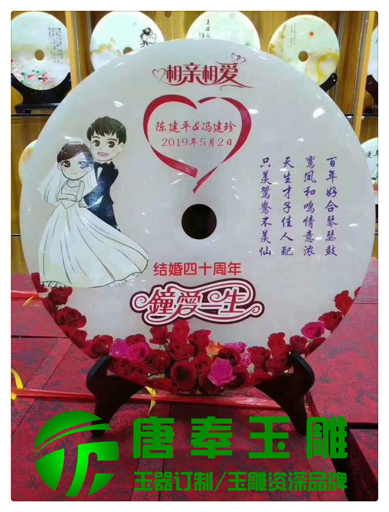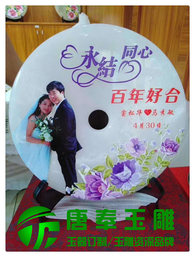 結婚紀念浮雕圖案玉平安扣用于竣工開業、周年紀念、畢業紀念、結婚紀念等地方浮雕圖案,公司logo,刻字等,既有品位又有收藏價值。